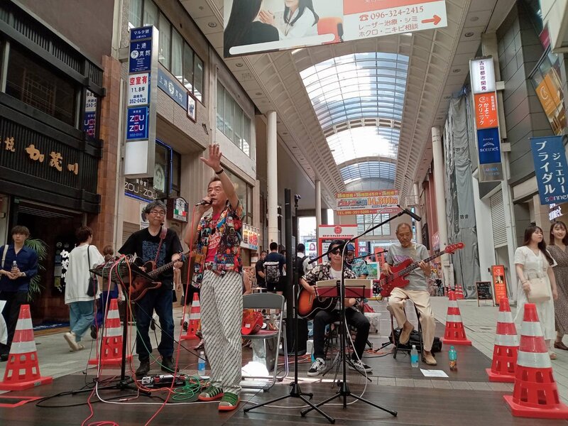 2023-08-05火の国まつりストリートフェスティバル2023/08/05土曜日午後、4年ぶりに開催された火の国まつり、ストリートフェスティバルに出演しました。 今回は上通アーケードでの演奏ということで、音響すべて持ち込みのストリートライブ。 ドラマー今井氏の代役としてカホンみこ姐、先日の御船町ライブに続いてスペシャルゲストの尾上香織さんにバイオリンで参加しました。 動画はこちらです |